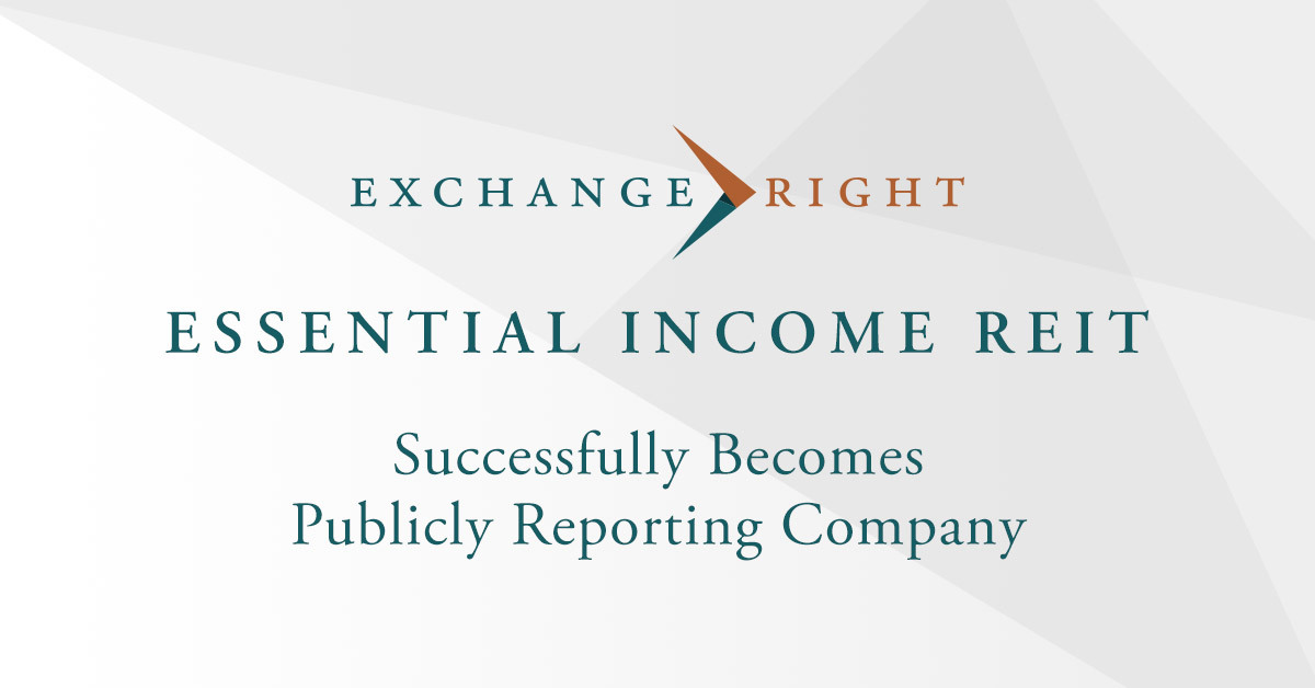 PASADENA, Calif. - ExchangeRight, one of the nation’s leading providers of diversified real estate DST and REIT investments, has announced the ExchangeRight Essential Income REIT has become a publicly reporting company as of June 26, 2023, expanding the REIT’s capacity to serve additional investors along with their registered representatives and advisors. This accomplishment successfully launches the REIT’s public reporting track record that will include quarterly 10-Q reports, annual 10-K reports, and periodic 8-K reports among others, and supports the execution of the offering’s aggregation strategy on behalf of its investors.