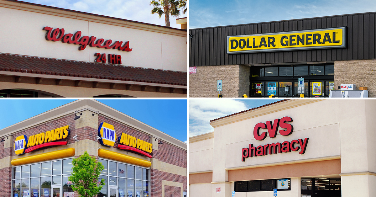 The portfolio consisted of 17 net-leased properties diversified across 204,479 square feet, nine states, and eight national investment-grade and otherwise creditworthy tenants operating in necessity-based and discount industries including Advance Auto Parts, CVS Pharmacy, Dollar General, NAPA Auto Parts, Family Dollar, Walgreens, Hobby Lobby, and Sherwin-Williams.