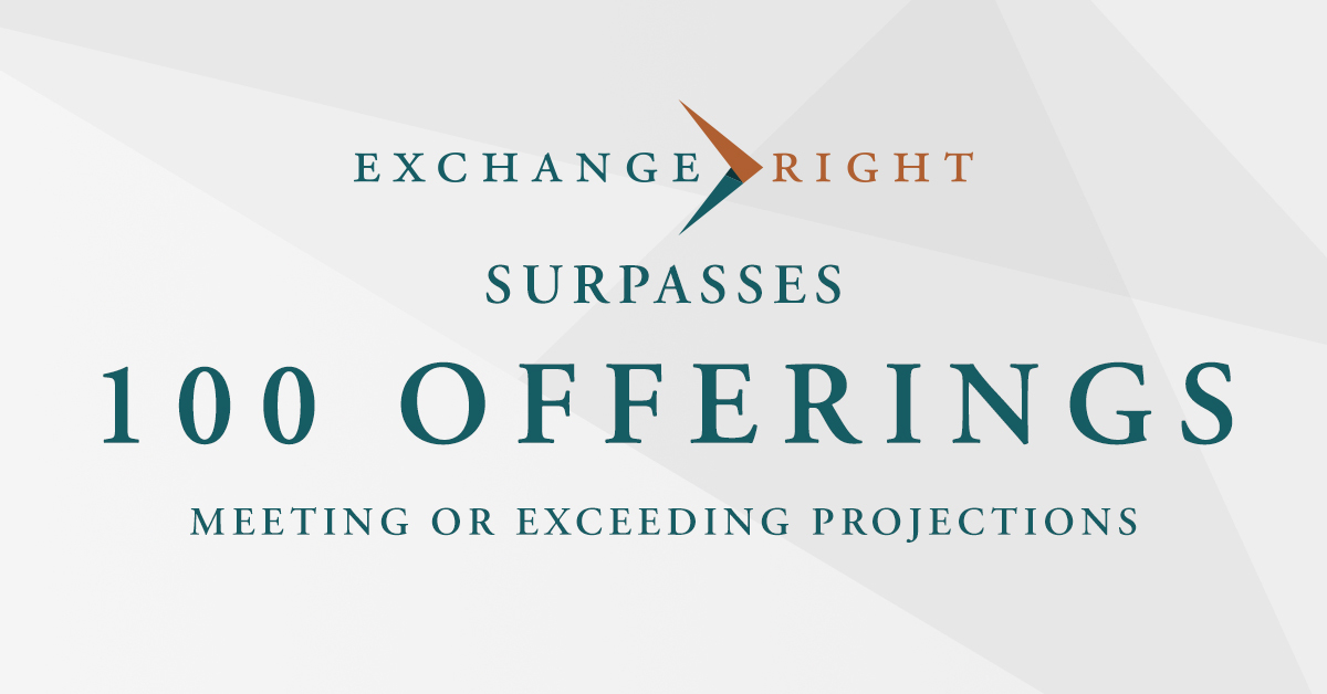 PASADENA, Calif. – ExchangeRight, one of the nation’s leading providers of diversified real estate DST and REIT investments, has announced that ExchangeRight and its affiliates have recently surpassed 100 offerings. Designed to protect capital, produce stable income, and provide strategic exits, ExchangeRight offerings collectively represent over $6.2 billion of capital stewarded on behalf of more than 8,600 investors nationwide. Best known for its reliable and recession-resilient net lease REIT and 1031 DSTs, all of ExchangeRight’s 100+ offerings have met or exceeded distribution targets since the company’s inception. Past performance does not guarantee future results.